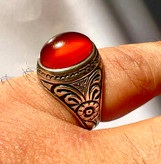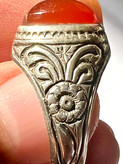 انگشتر عقیق کهنه یمن با رکاب قلمزنی کمیاب استاد میرزا جعفر قدیمیان ،کلکسیونی و بکر کد ۴۲۴