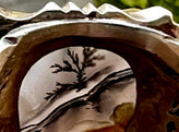، روی سنگ منظره تکدرخت مشکی واضح و زیبا ، پشت سنگ منظره واضح تپه و تکدرخت مشکی