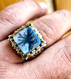 انگشتر سنگ عقیق معدنی و طبیعی شجر تک درخت قاین اصل رکاب استاد مجردیان کد ۴۳۲