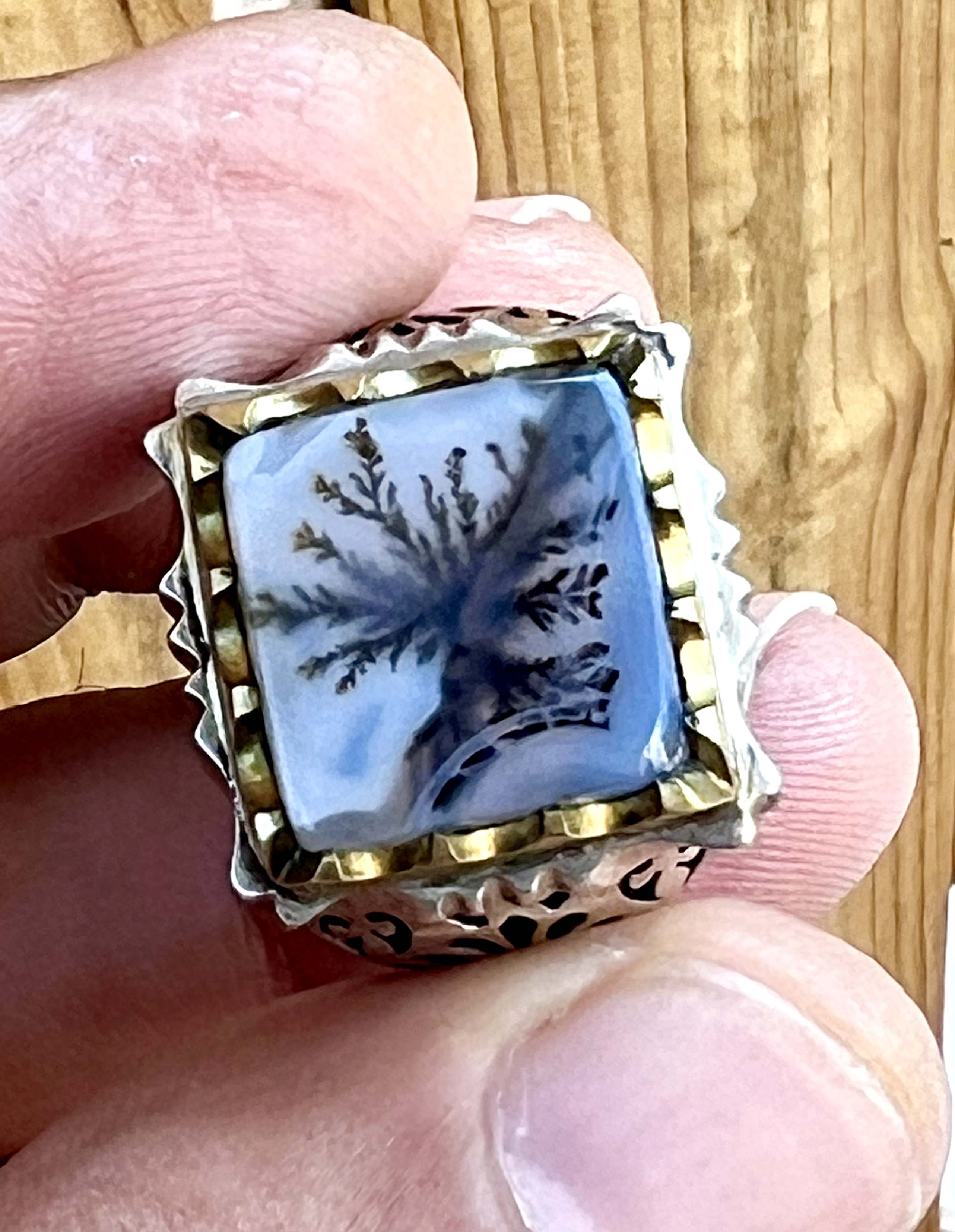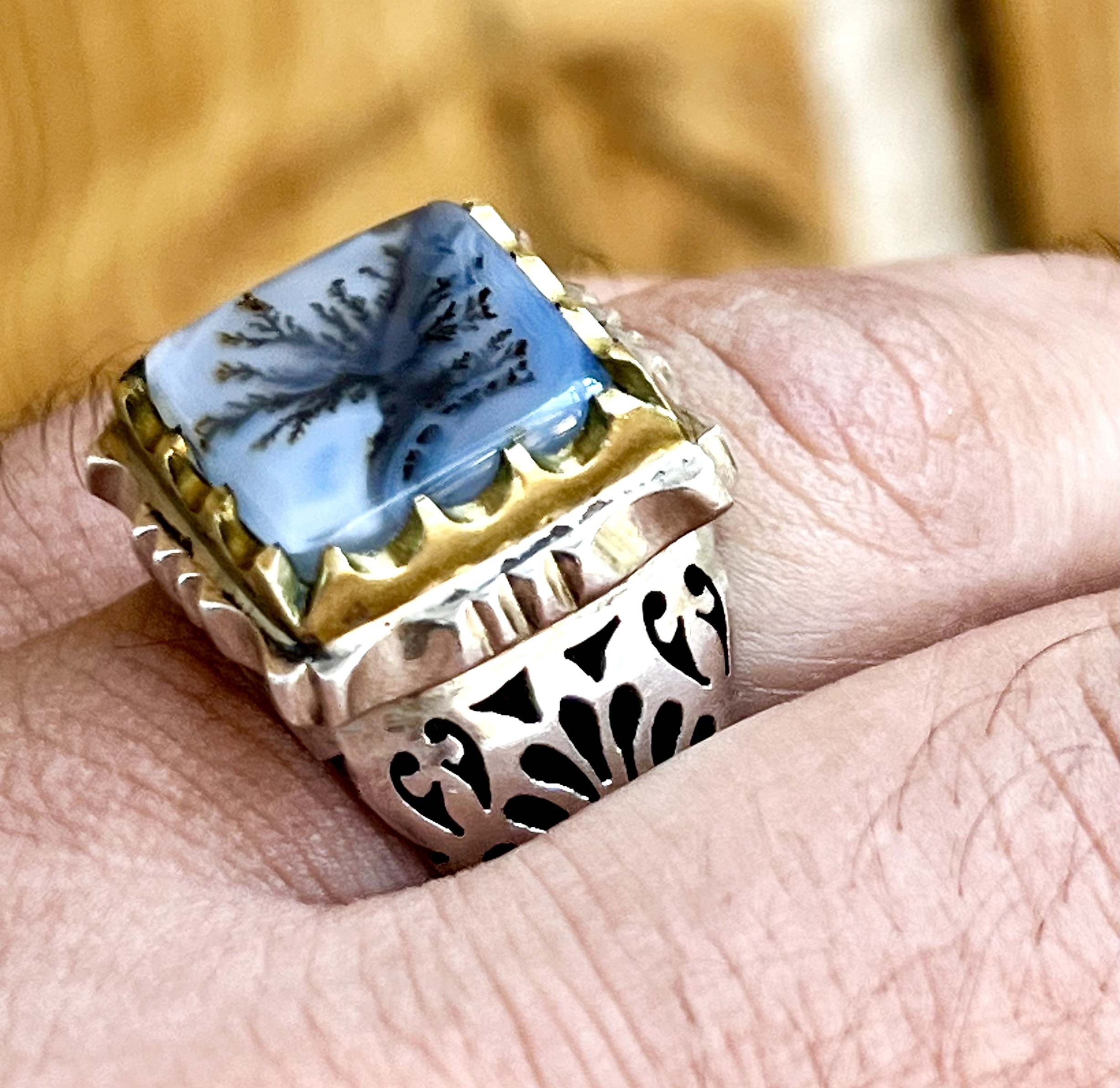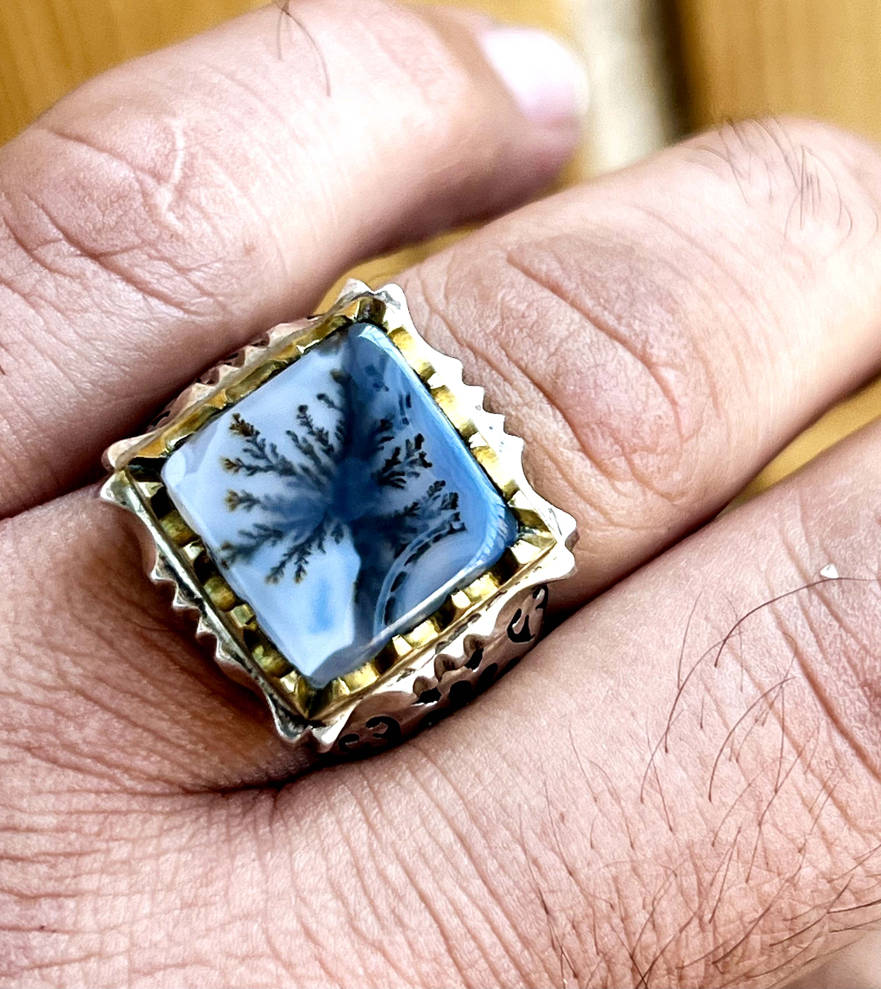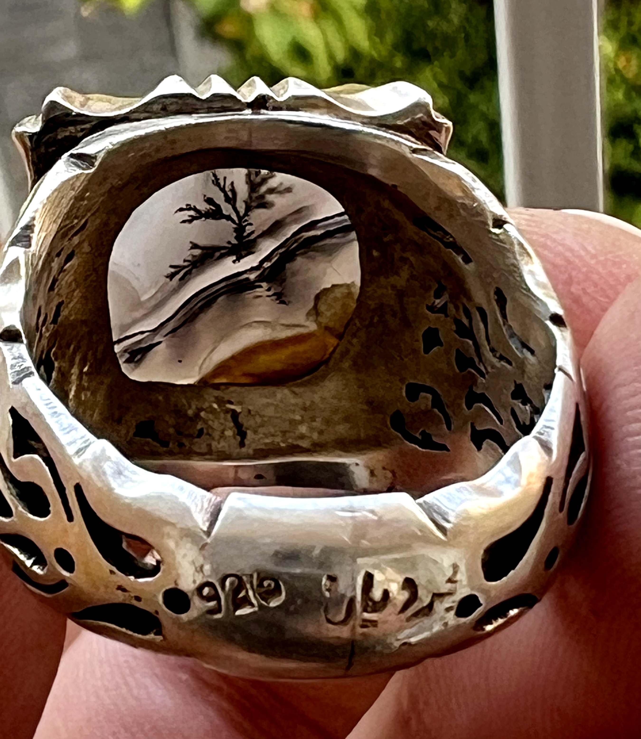 انگشتر نقره ۹۲۵ با سنگ شجر تکدرخت قائن