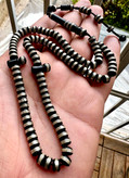 تسبیح چوب آبنوس کهنه ، کلکسیونی تمام نقره کوبی