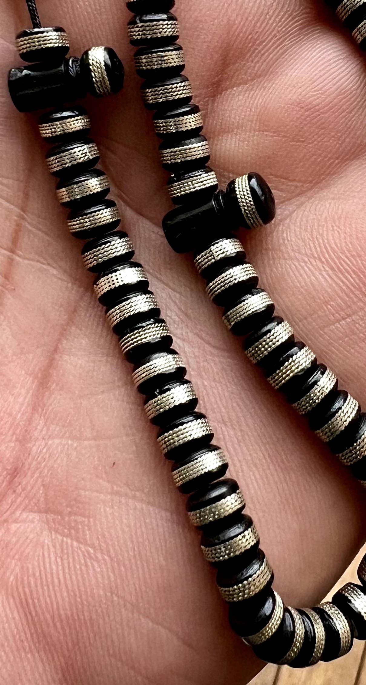 تسبیح چوب آبنوس کهنه ، کلکسیونی تمام نقره کوبی