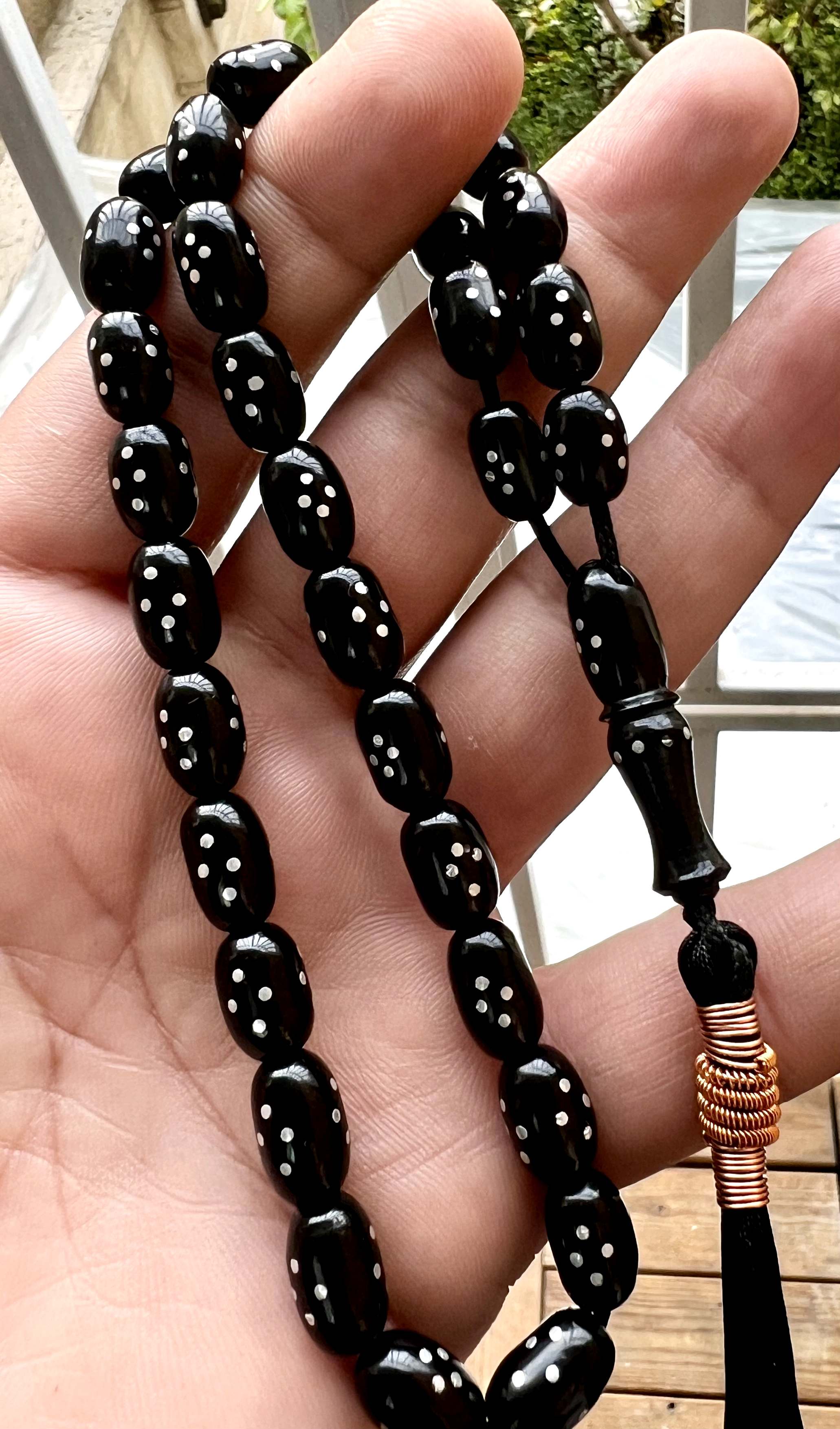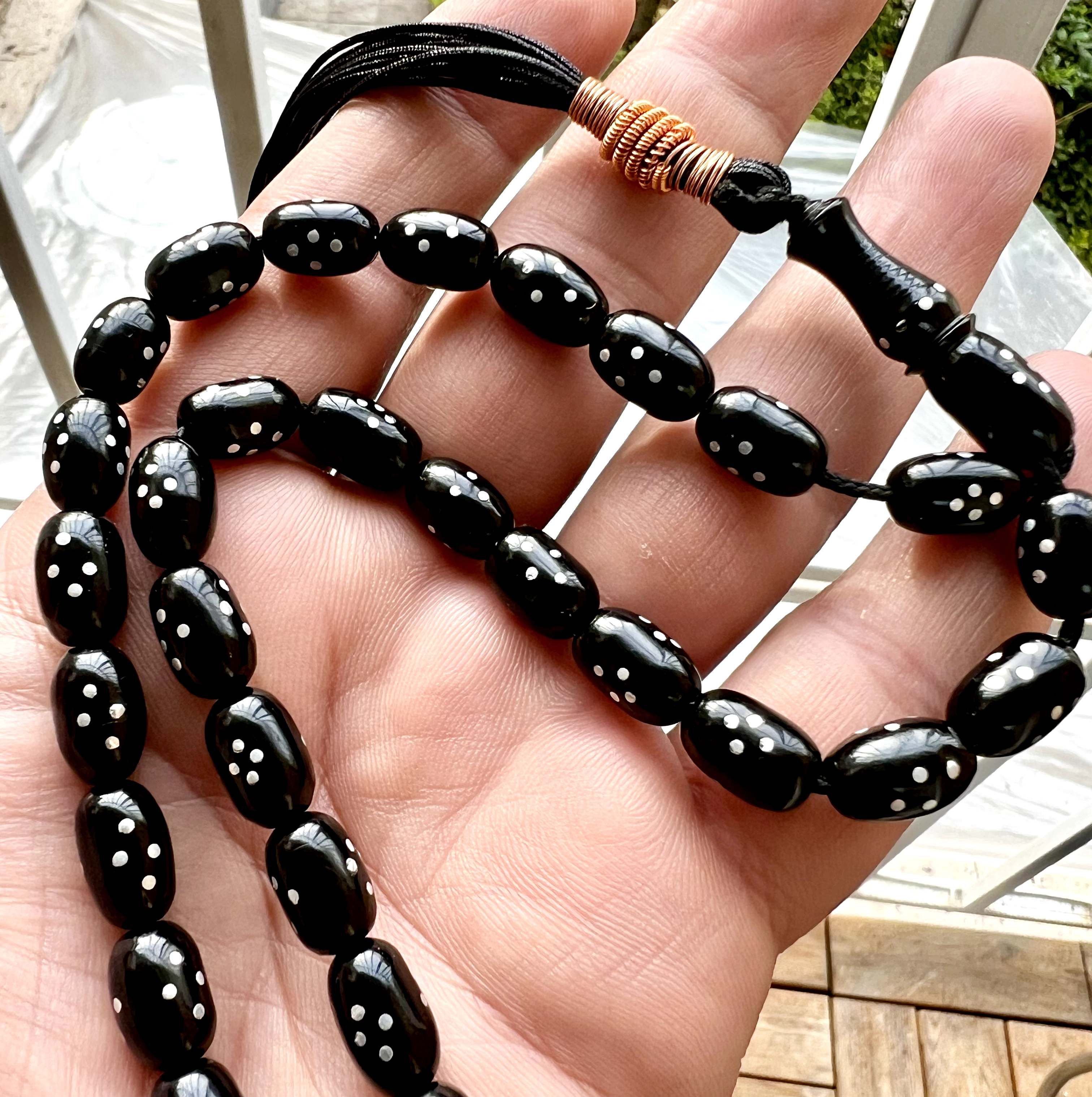 تسبیح سندلوس مشکی واکسی کهنه آلمان ، کلکسیونی ، بکر و پلمپ