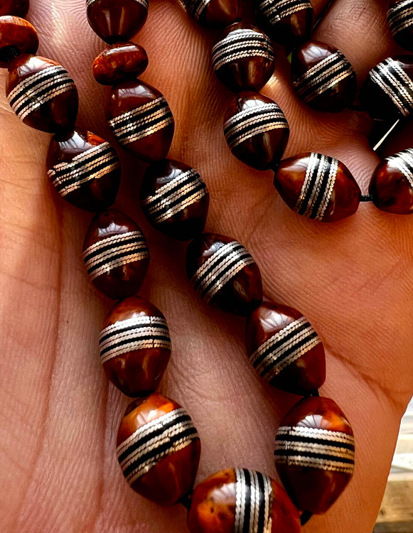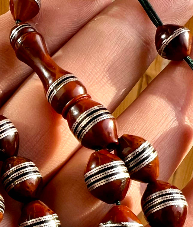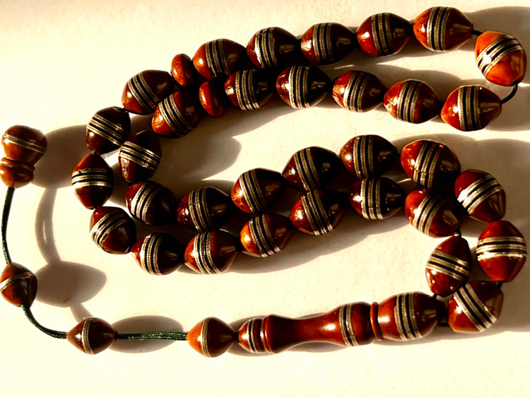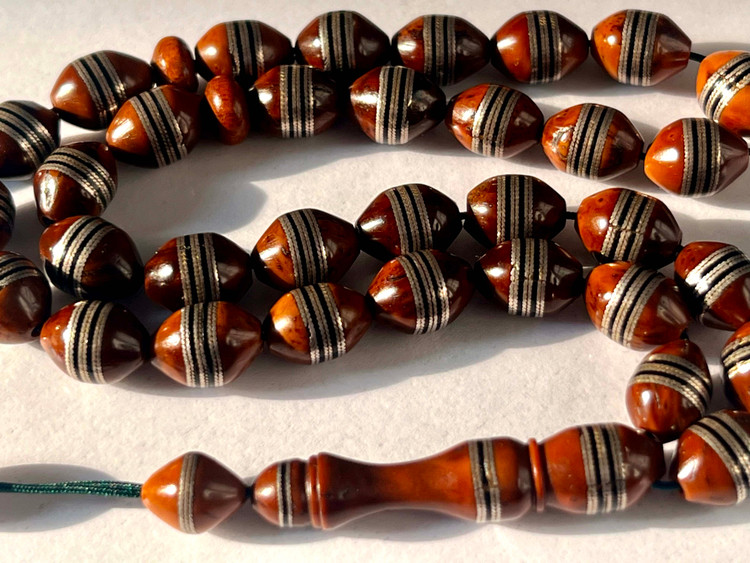 تسبیح کشکول کهنه کلکسیونی تمام نقره کوب استاد کار تراش کد ۴۴۲