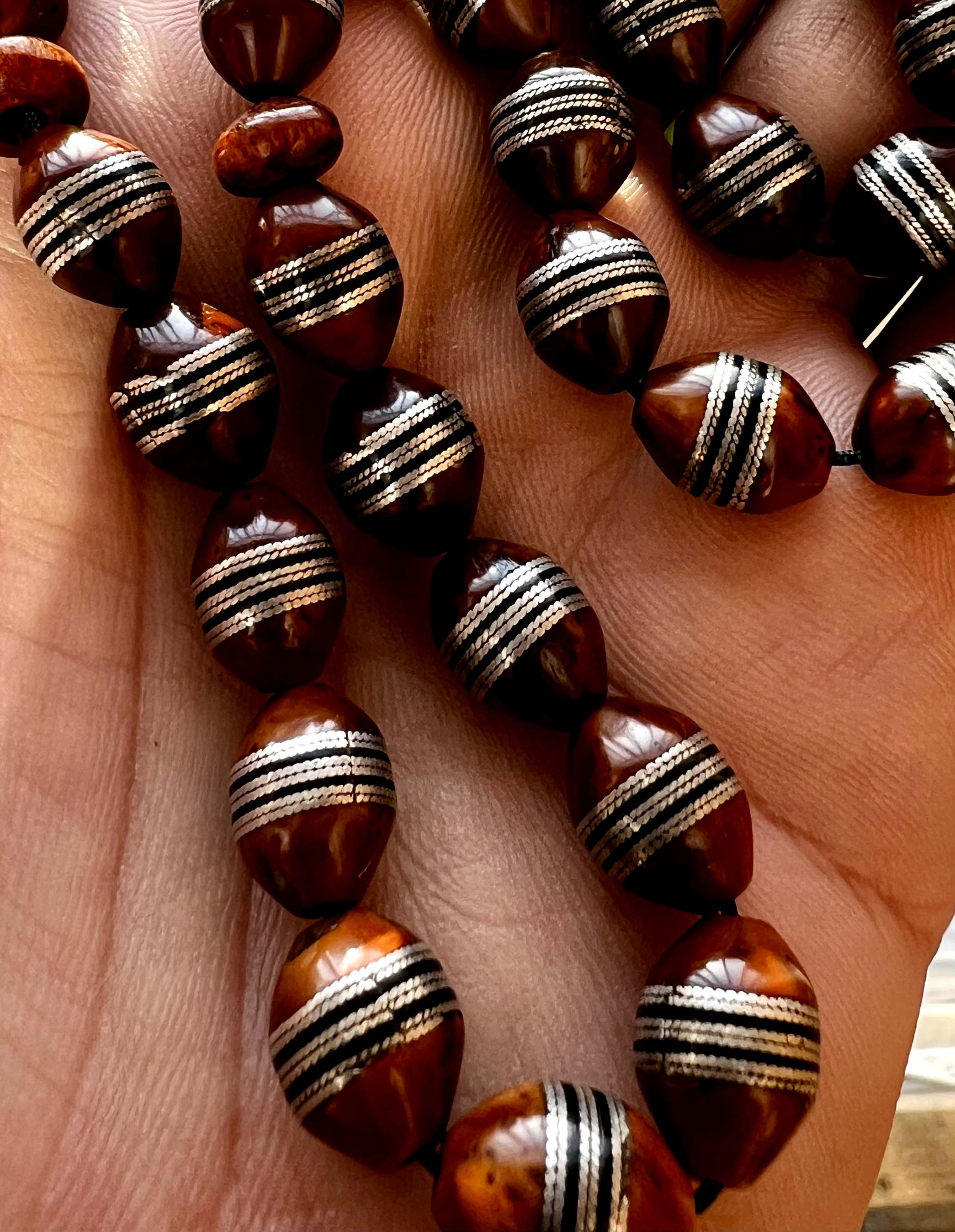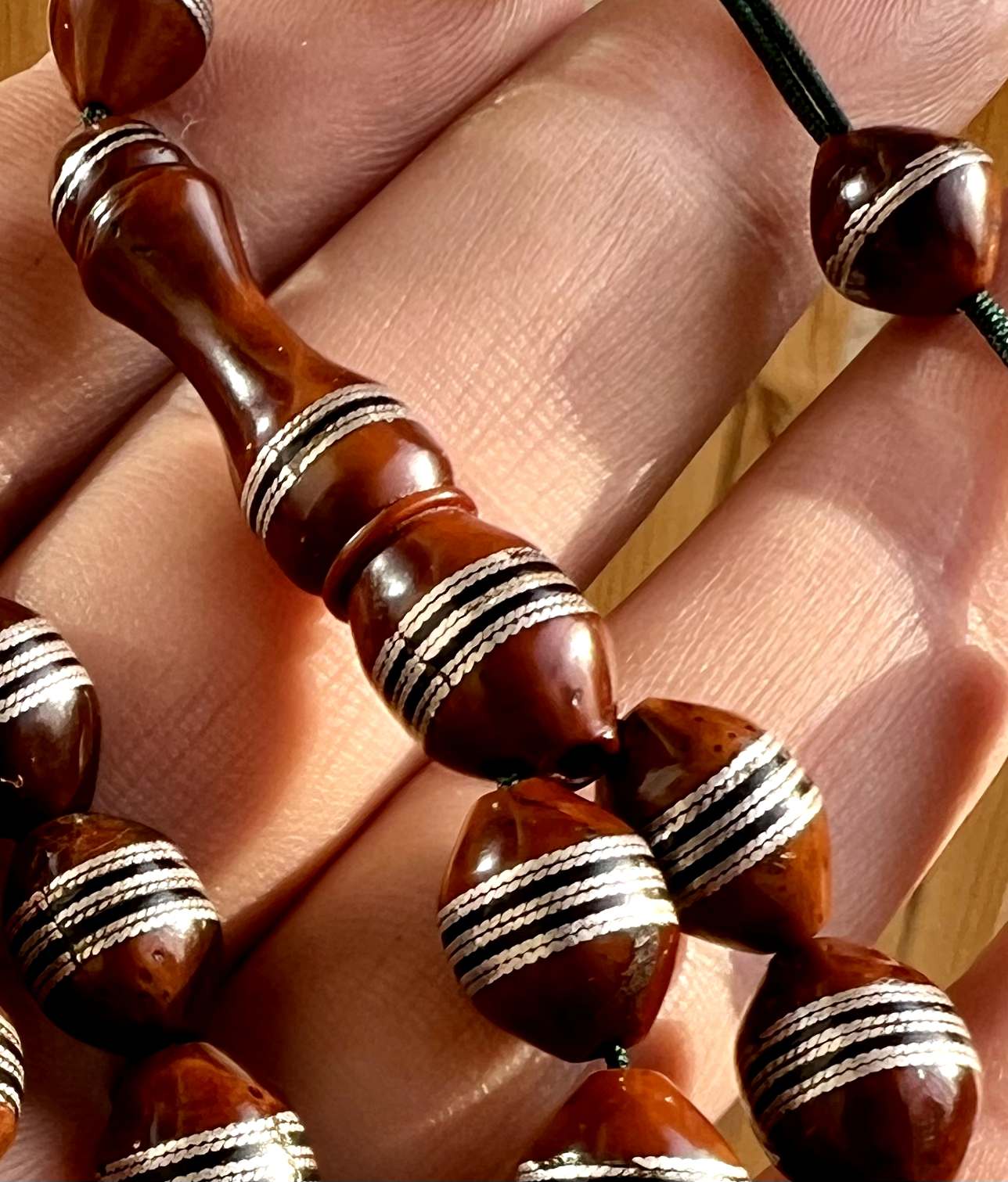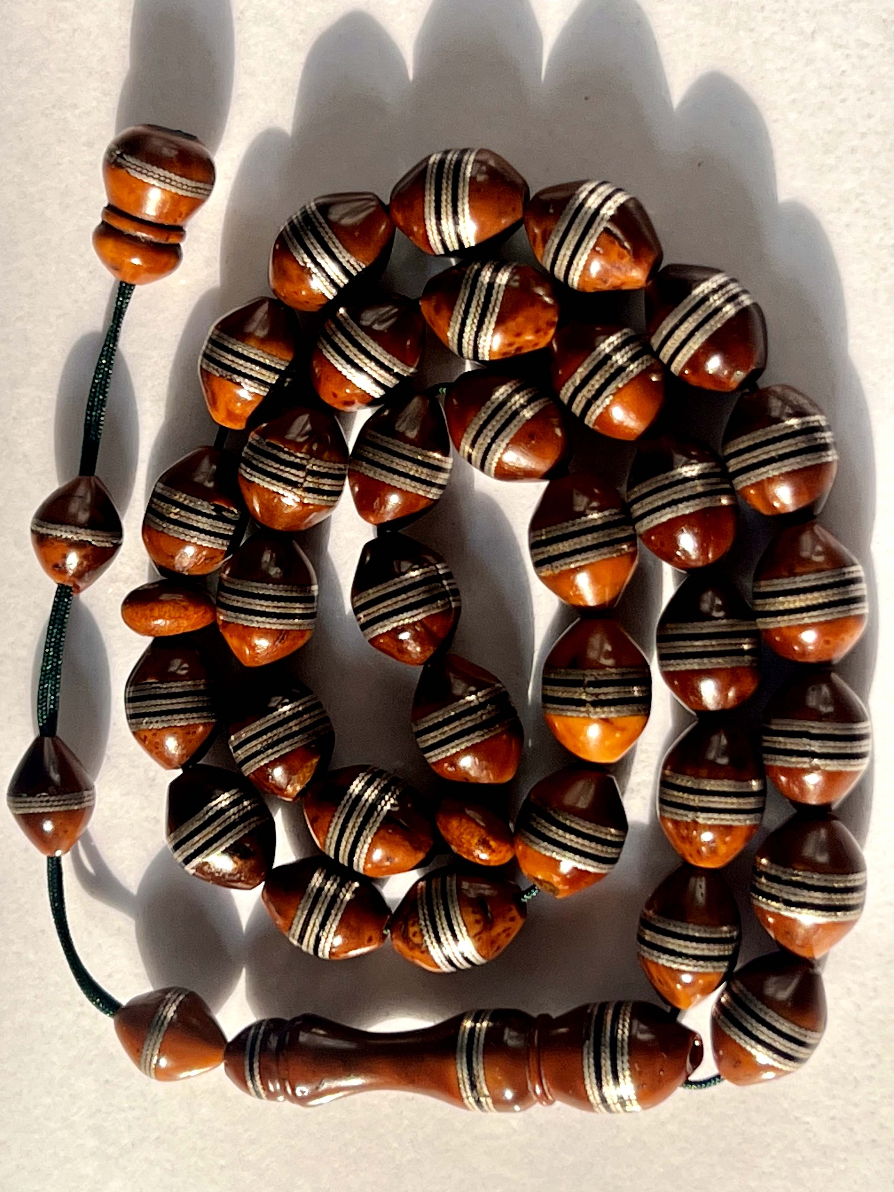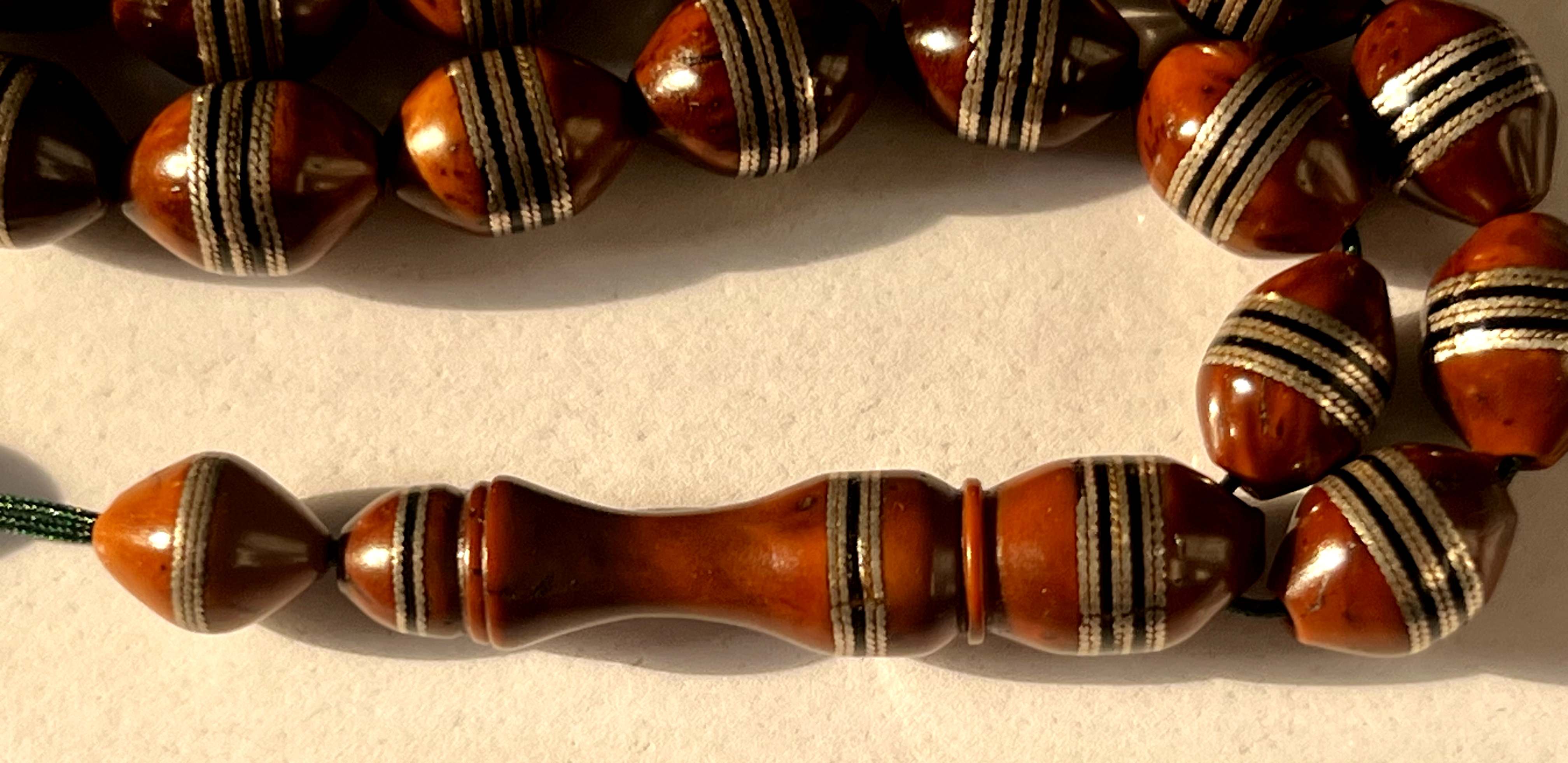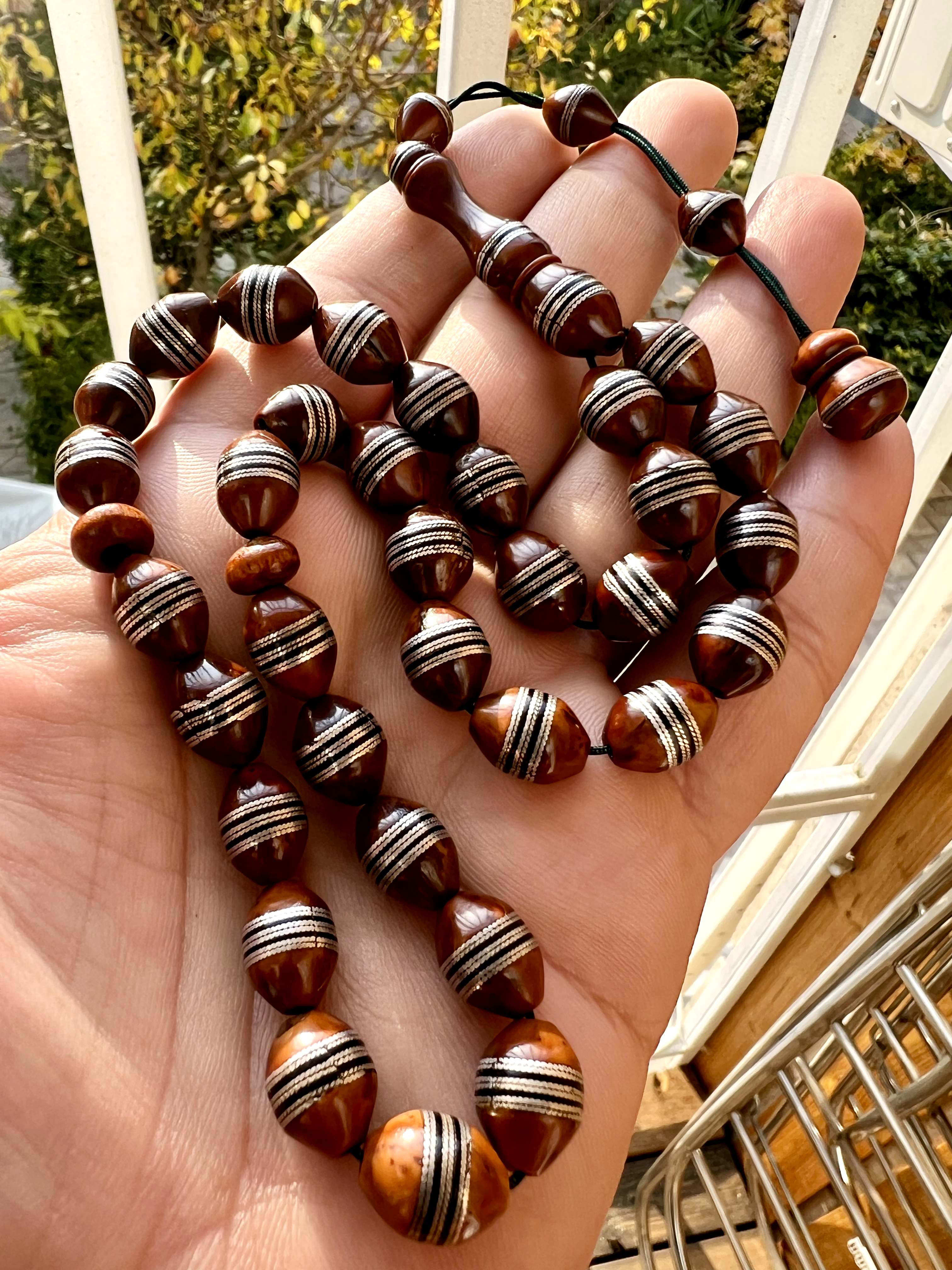 تسبیح کشکول کهنه کلکسیونی تمام نقره کوب استاد کار تراش کد ۴۴۲