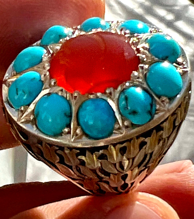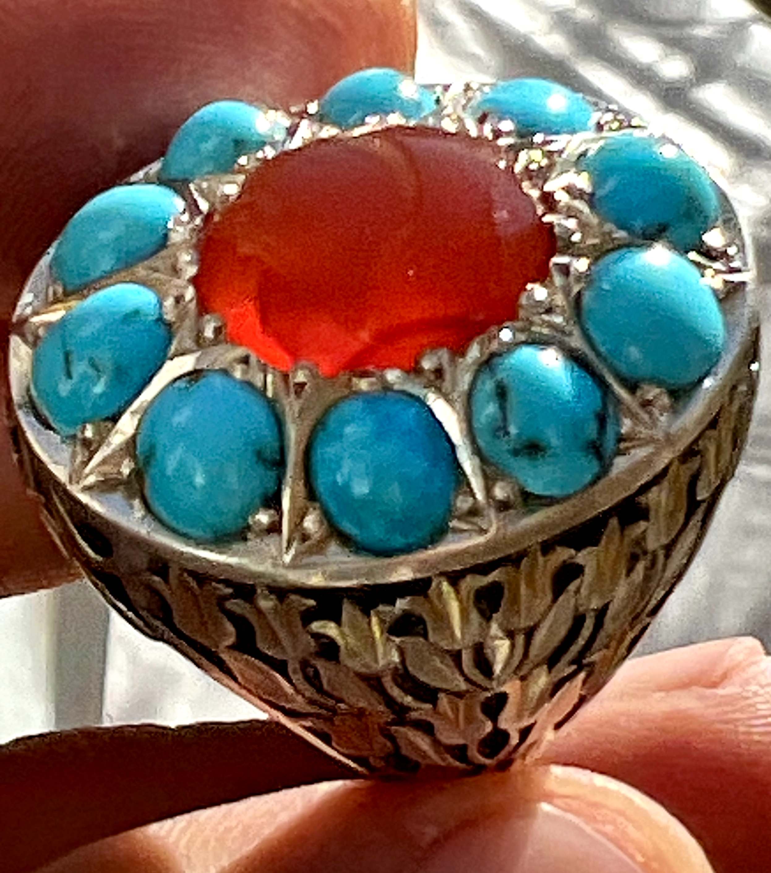 نگین اصلی عقیق کهنه یمنی پرتغالی به ابعاد ۱۵ در ۱۰ میلیمتر