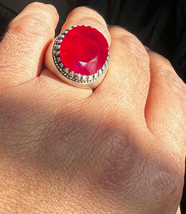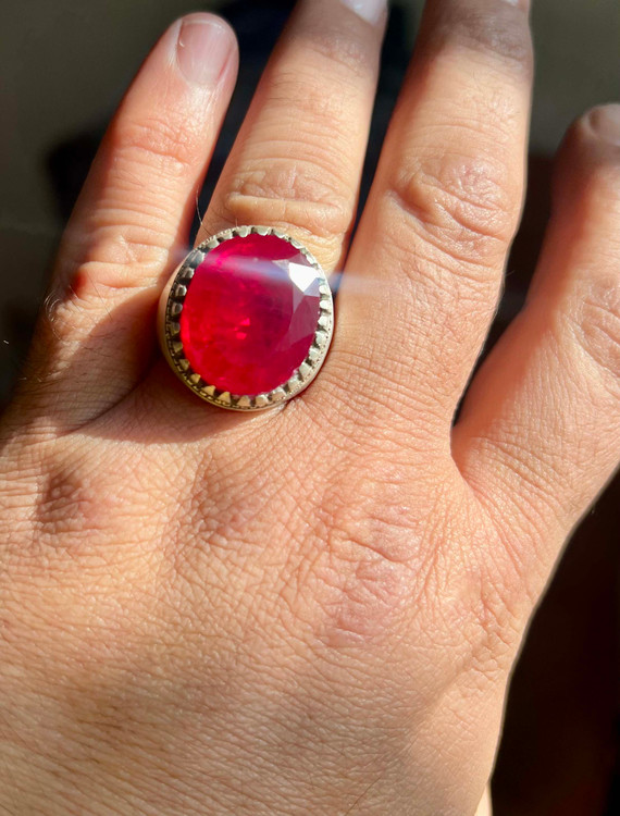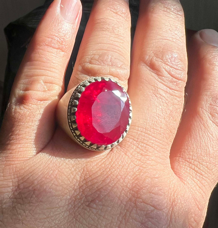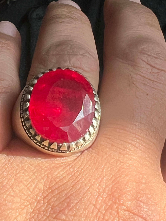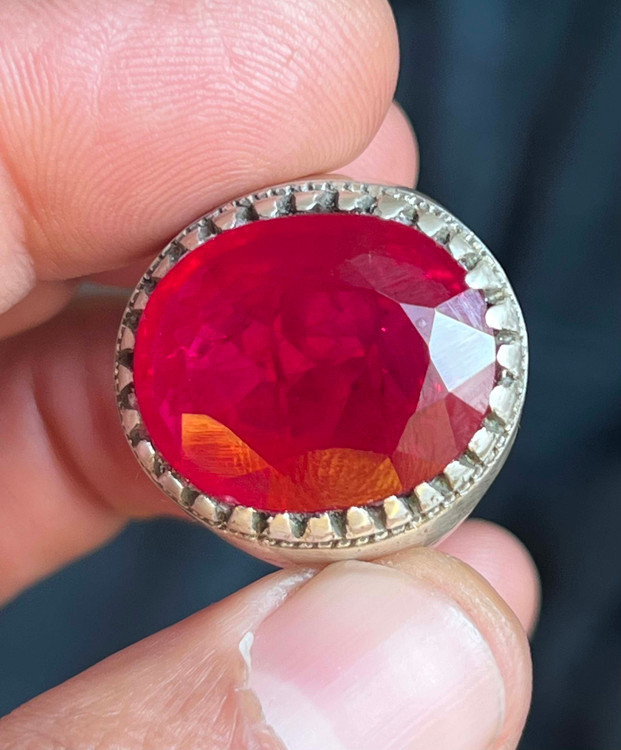 انگشتر نقره ۹۲۵ قدیمی با نگین یاقوت شمش درشت و خاص