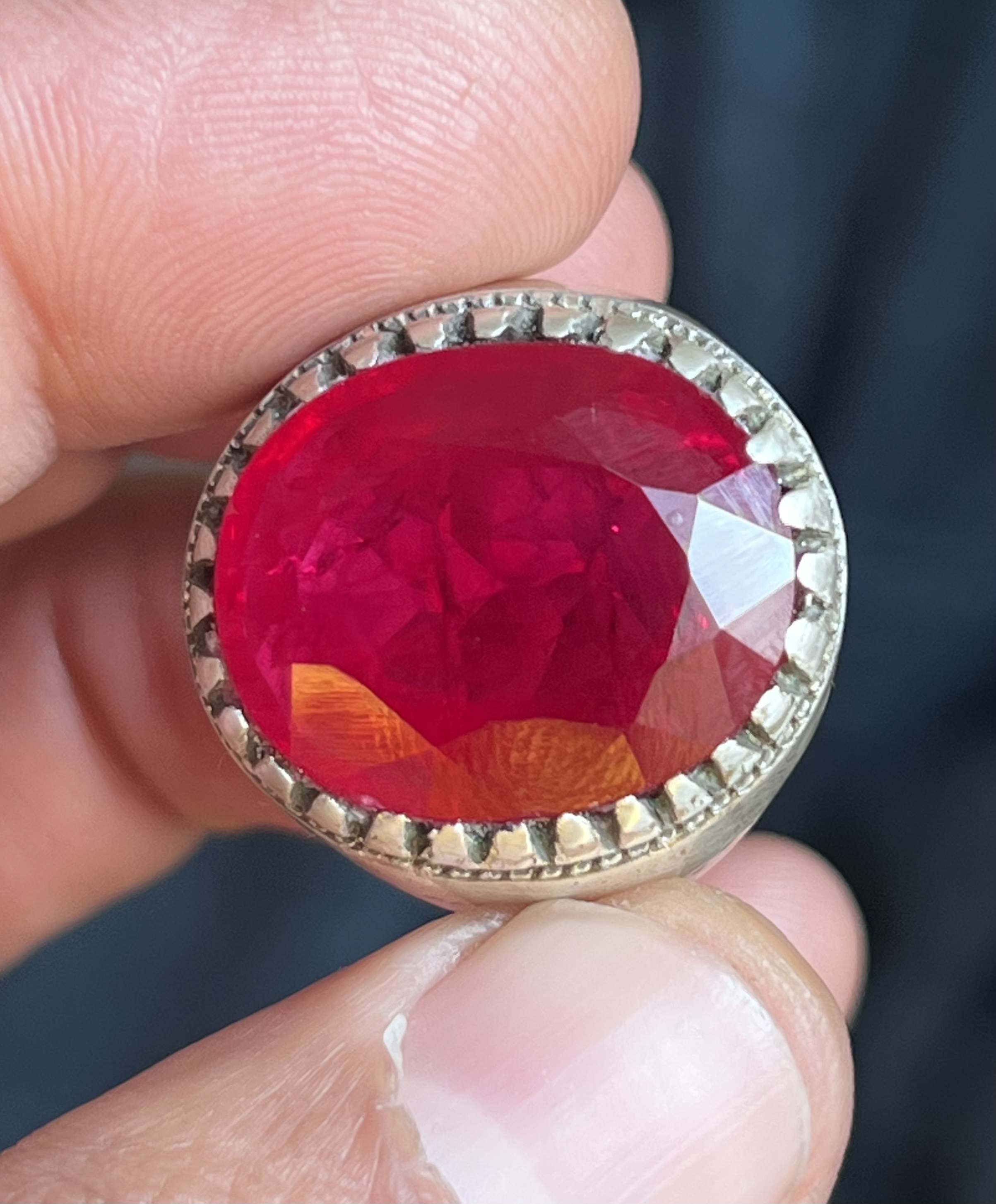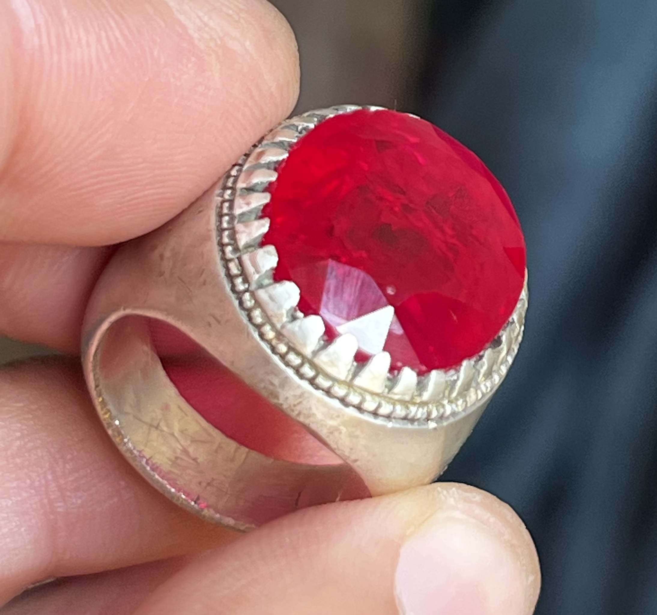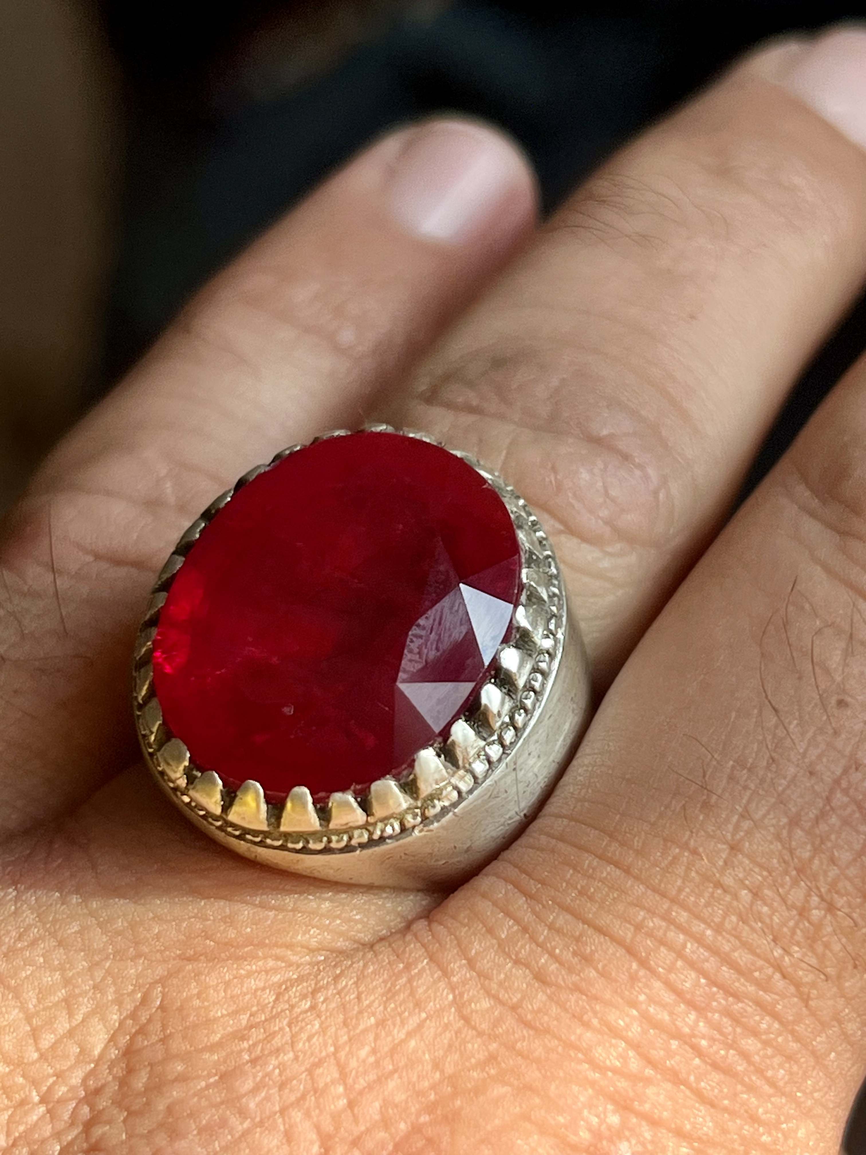 انگشتر نقره ۹۲۵ قدیمی با نگین یاقوت شمش درشت و خاص