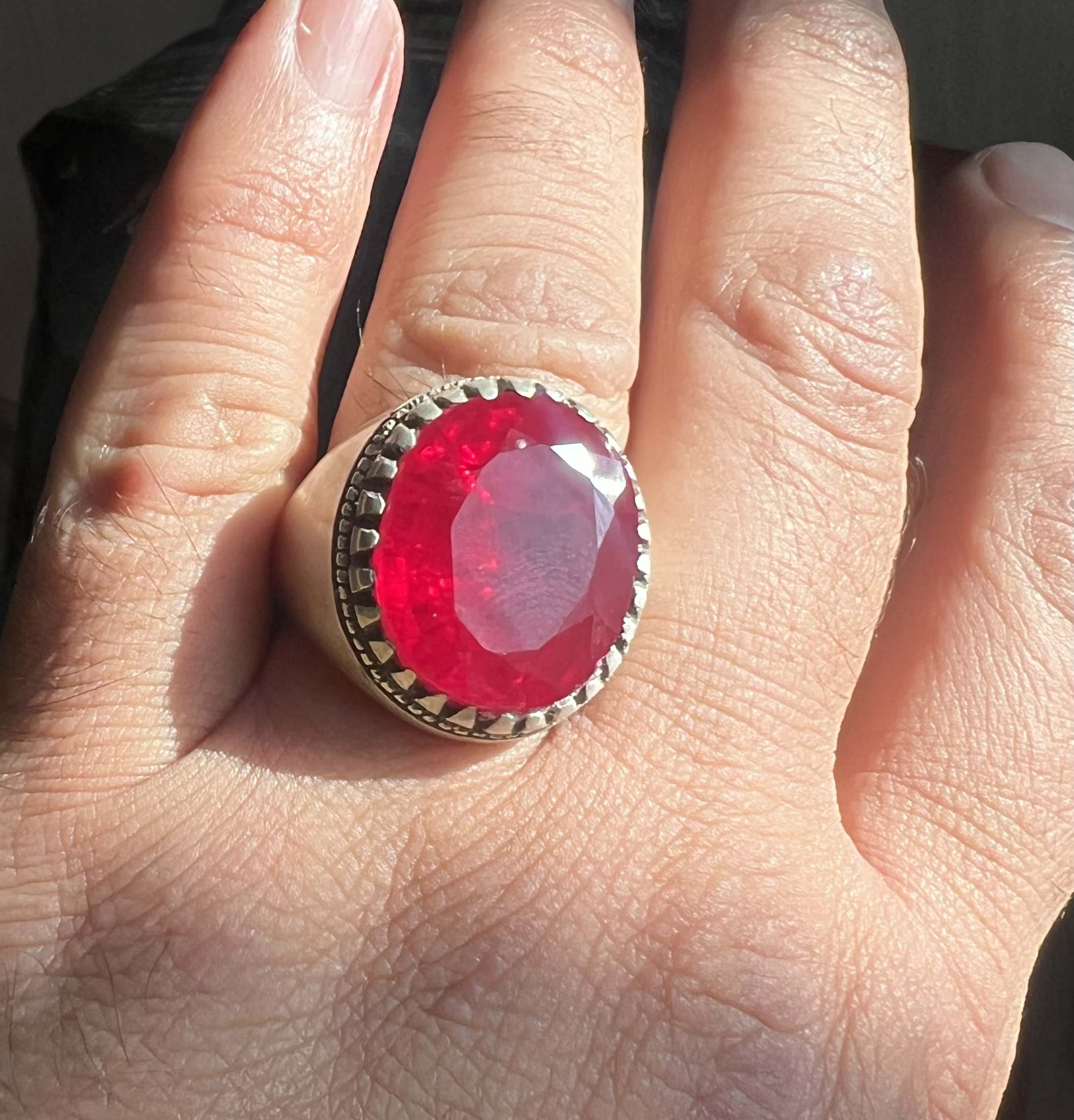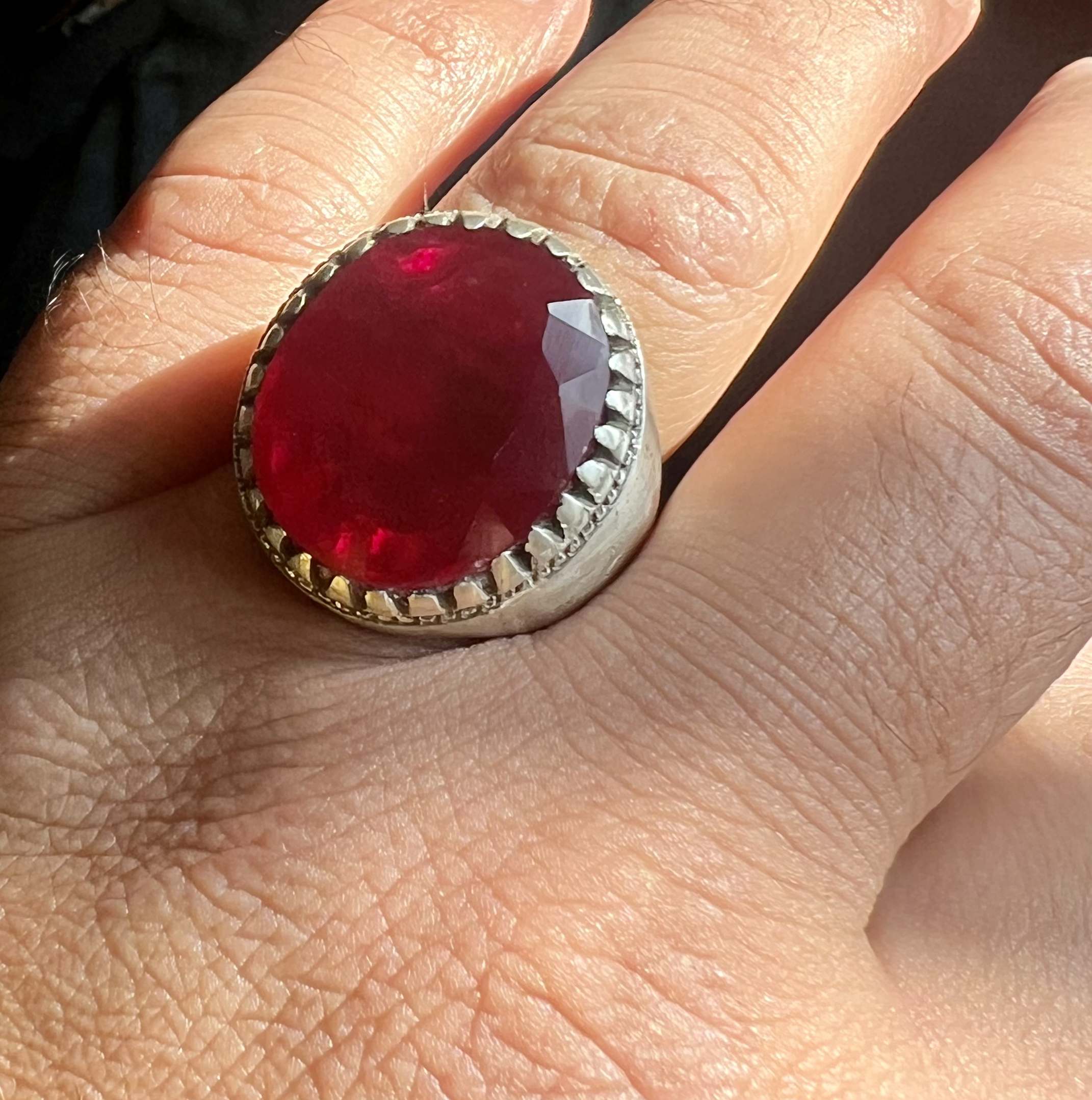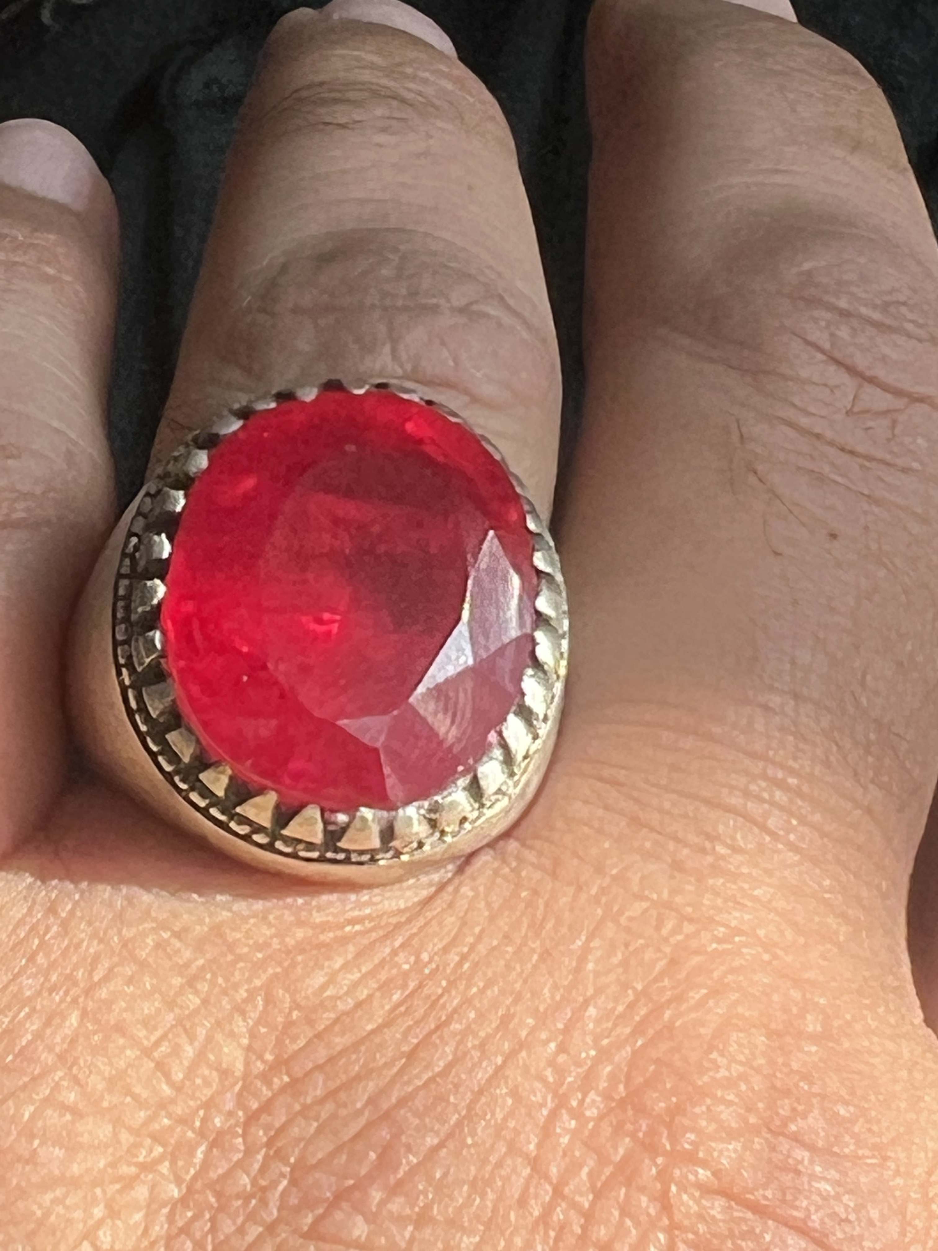 انگشتر نقره ۹۲۵ قدیمی با نگین یاقوت شمش درشت و خاص