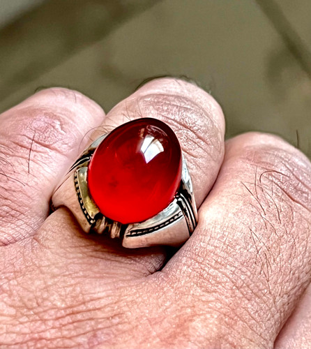 انگشتر عقیق سرخ یمنی کهنه و طوقدار ، خطی ،بسیار خاص۶٬۳۰۰٬۰۰۰ 5%