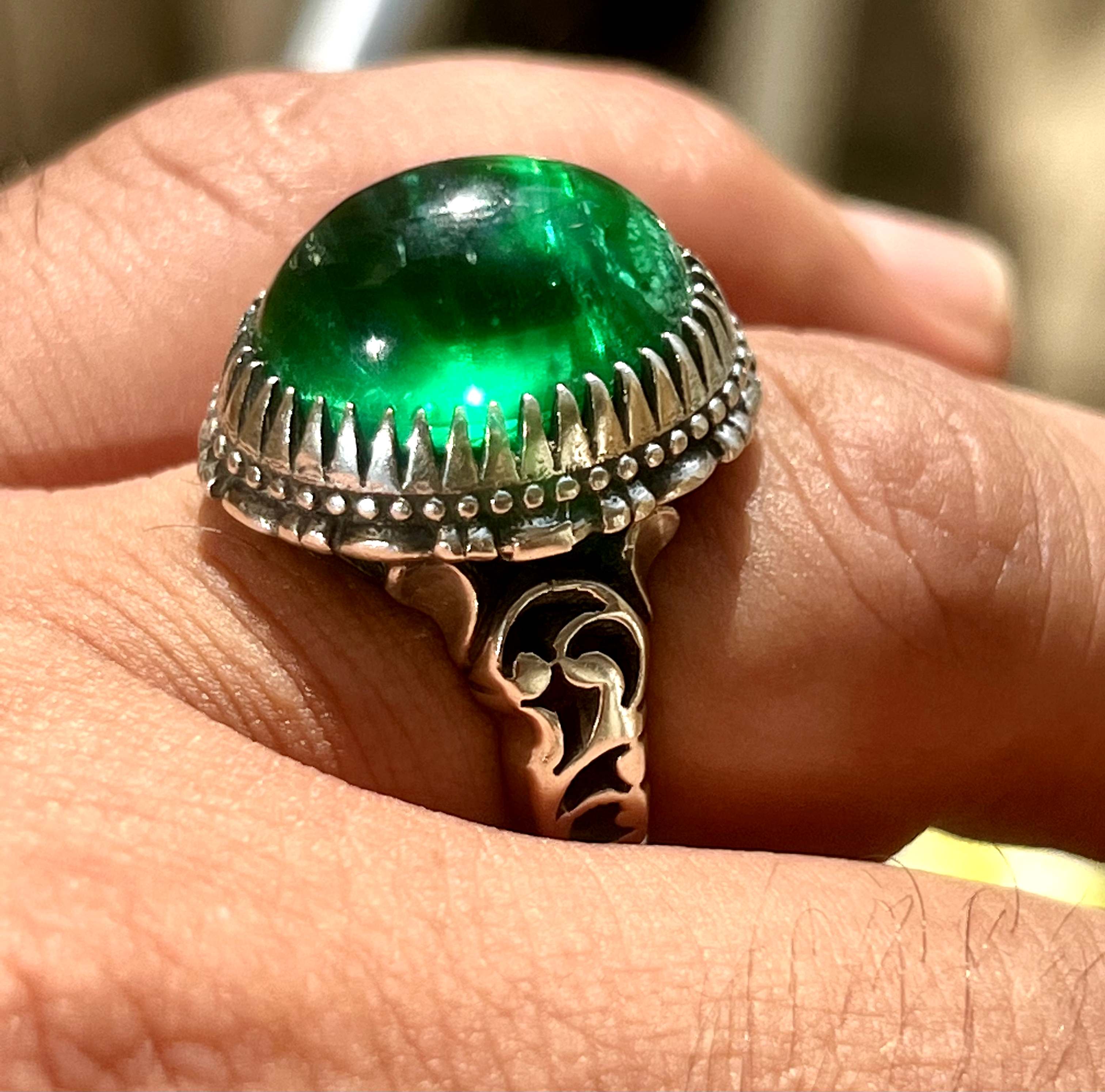 انگشتر نقره زمرد برزیلی معدنی اصل تراش دامله رکاب دستساز کد ۳۹۰ناموجود