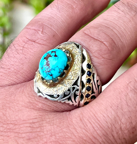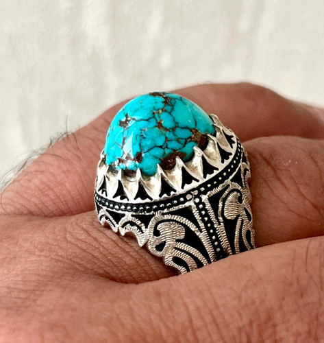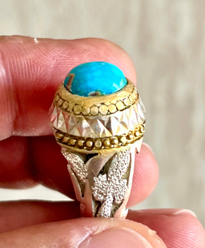 انگشتر فیروزه نیشابوری اصل بدون احیا رکاب تماما کار دست استاد سروش کد ۳۰۵۵٬۲۰۰٬۰۰۰ تومان