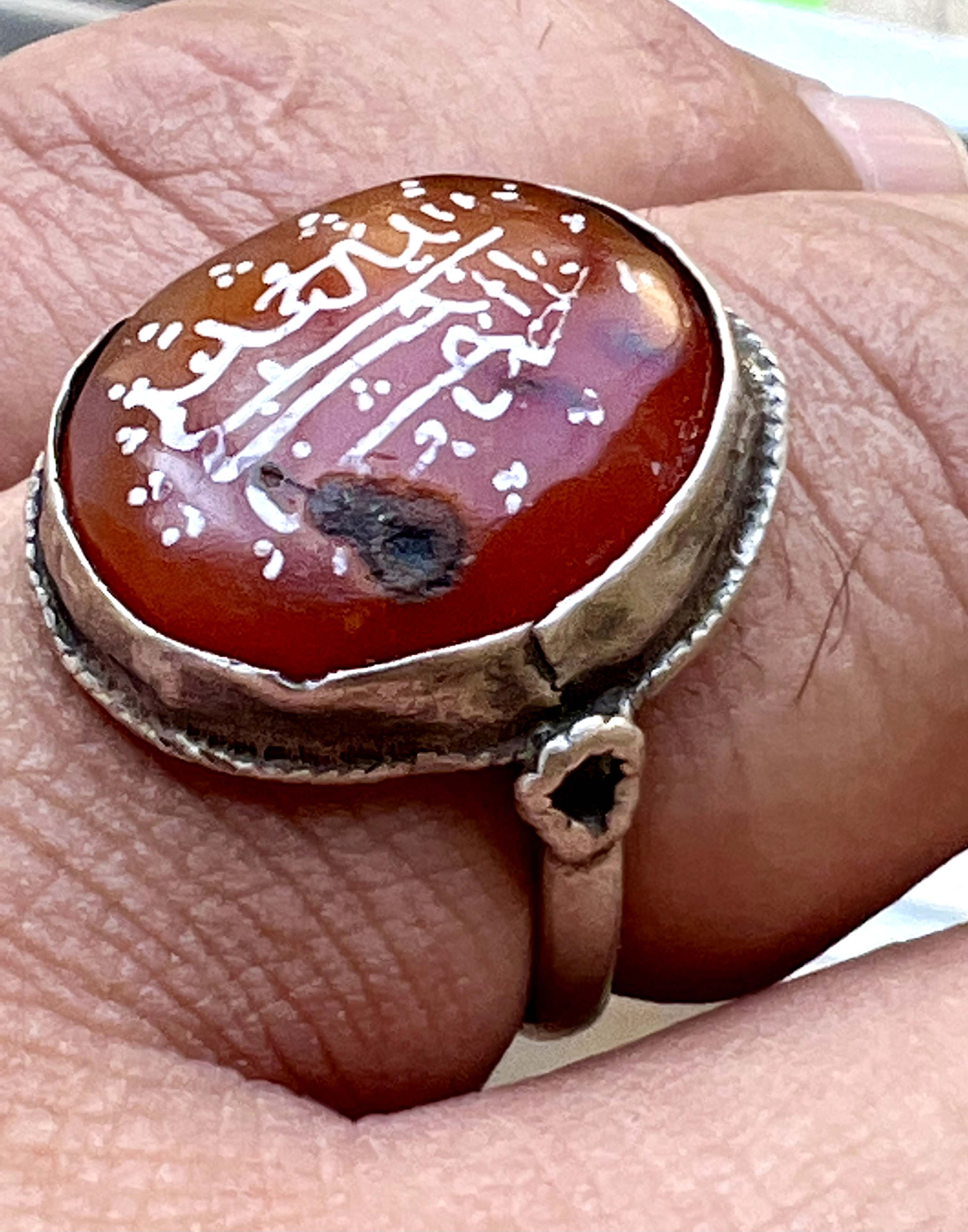 انگشتر عقیق سرخ کهنه یمنی خط بیازی(پیازی)صفوی اصیل با رکاب فابریک دوران صفوی، کد ۳۶۰۶٬۵۰۰٬۰۰۰ تومان