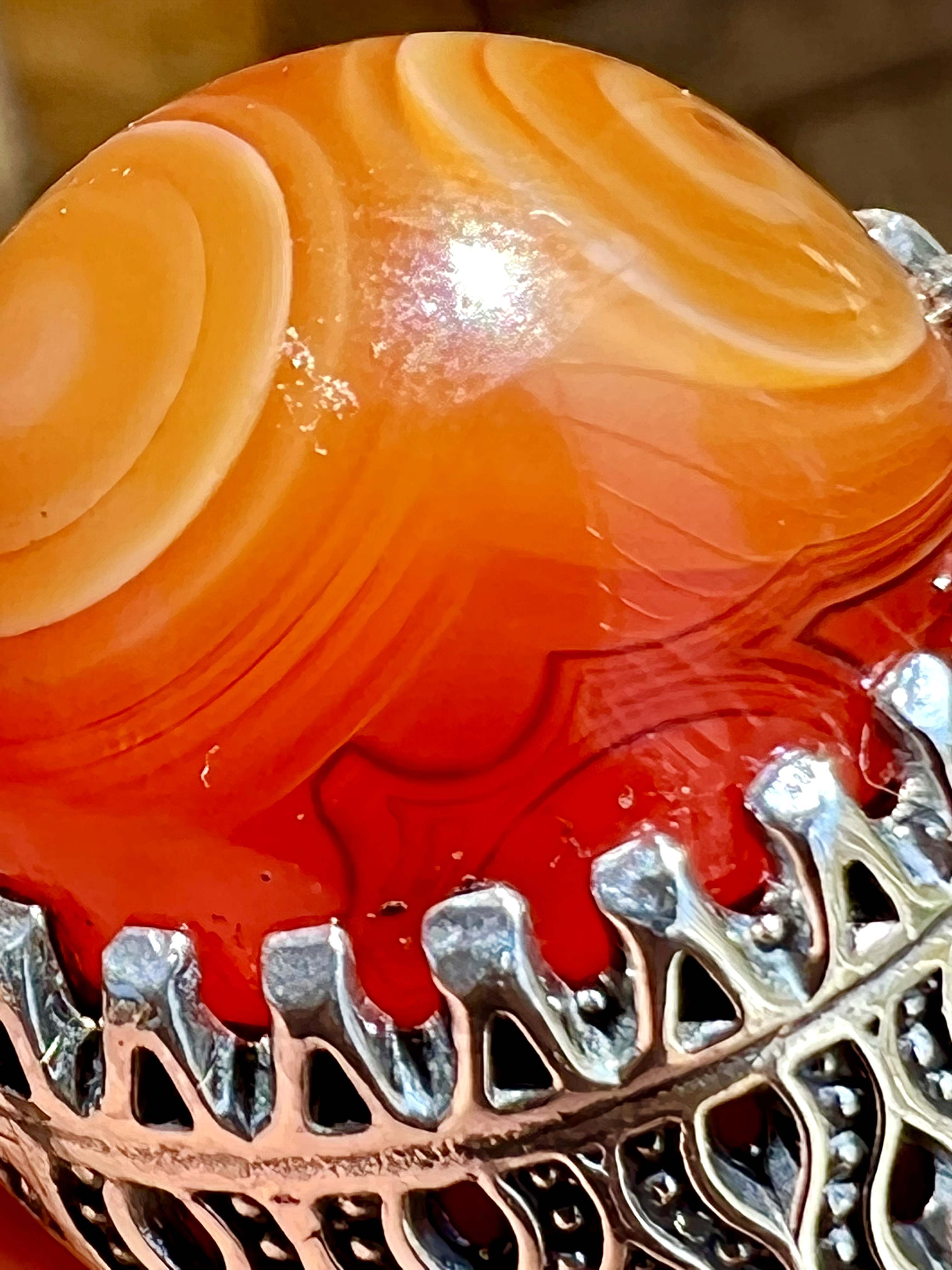انگشتر عقیق سه پوست باباقوری با رکاب قلمزنی هخامنش