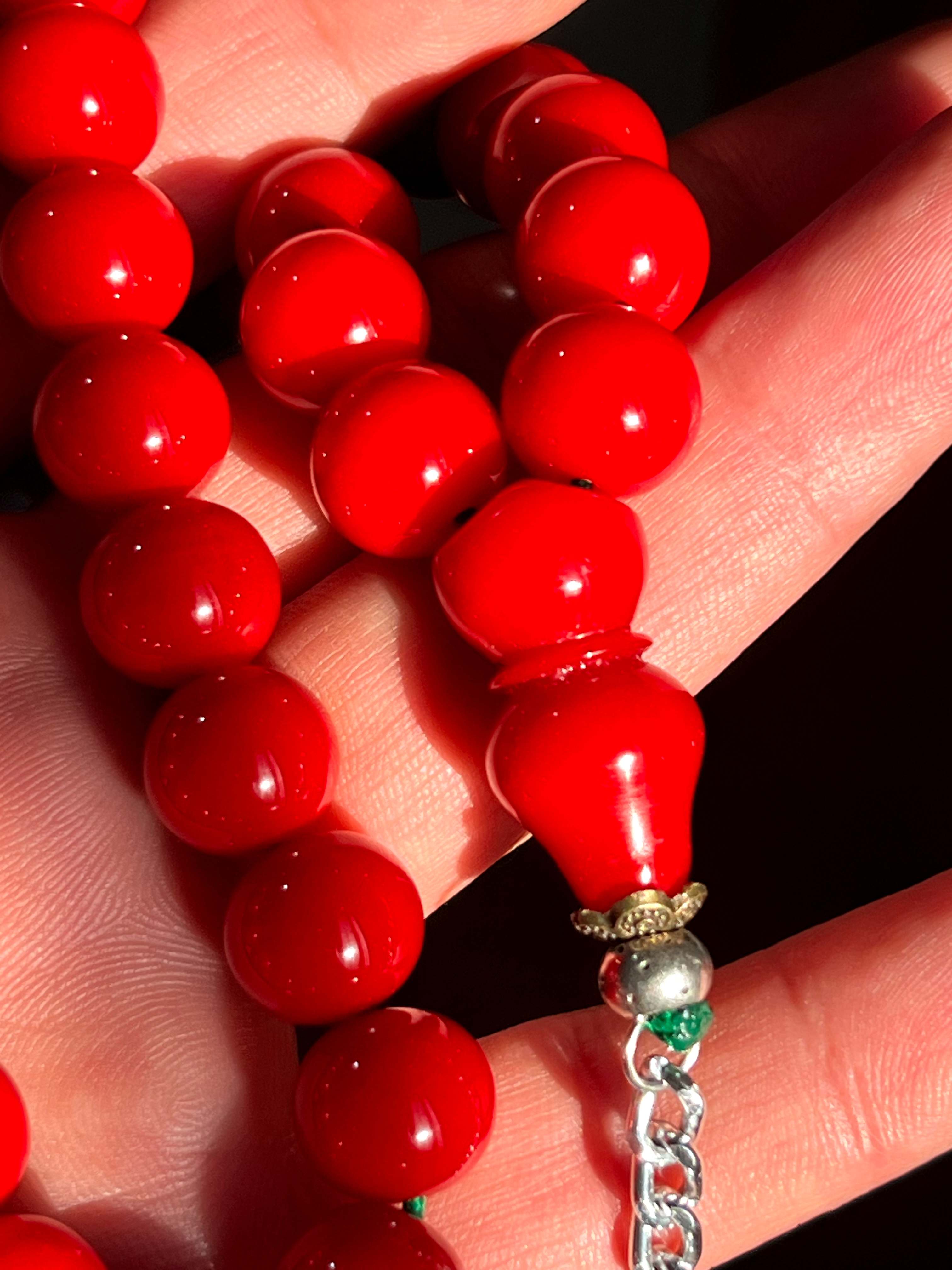 تسبیح سندلوس مرجانی کهنه کلکسیونی ۳۳ عددی کد ۴۴۶
