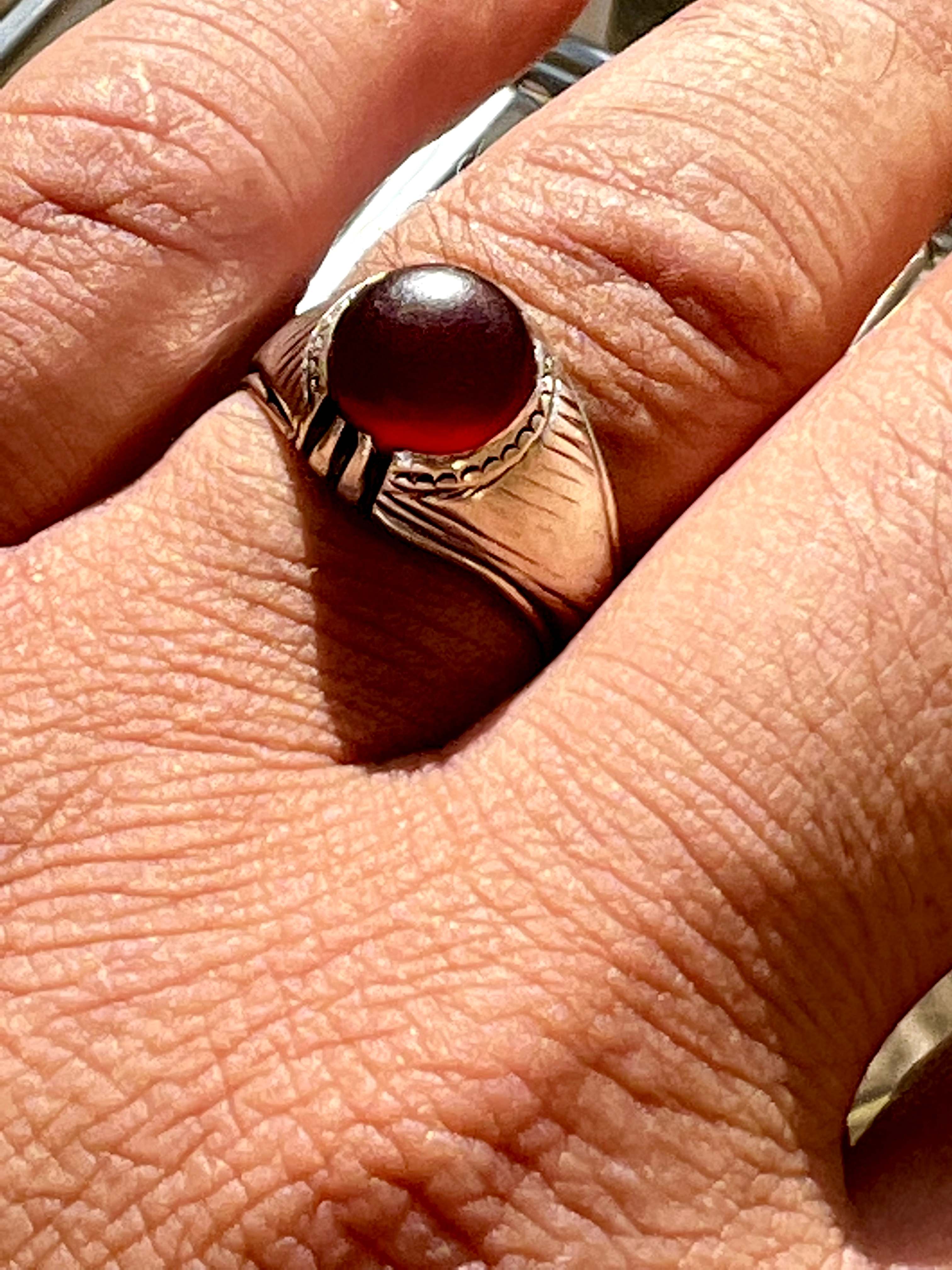 انگشتر عقیق سرخ یمنی کهنه و طوقدار ، خطی ،بسیار خاص