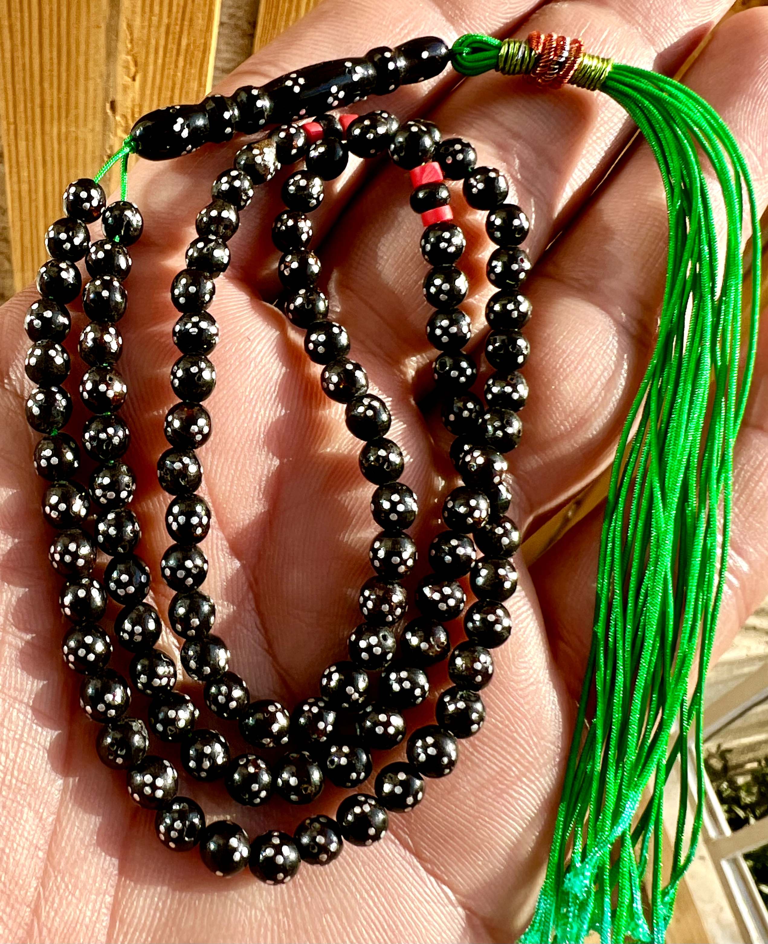 تسبیح یسر حجاز یا مکاوی کهنه بودار اصیل و نقره کوب